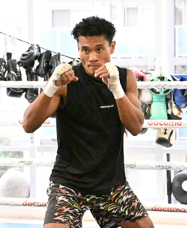 世界ボクシング協会(WBA)スーパーライト級タイトルマッチ(11月14日、米フロリダ州マイアミ)で、王者のゲーリー・ラッセルに挑戦する平岡アンディ(写真)が28日、横浜市内の所属ジムで練習を公開した。 【時事通信社】