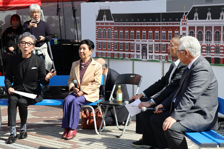有罪が確定した刑事裁判をやり直す再審制度の改正を巡り、冤罪(えんざい)被害者らが18日、法務省が成立を目指す法案に反対する街頭活動を東京のJR渋谷駅前で行った。写真は袴田ひで子さん(前列左から2人目) 【時事通信社】