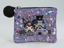 先行販売アイテムは、コーヒーカップや観覧車を楽しむハローキティ、マイメロディ、クロミ、リトルツインスターズをデザインした財布ポシェット「Sanrio characters Carnival Dream」(3万1,900円)、クロミと城をスパンコールで立体的に仕上げた「スパンコール刺しゅうポーチ『Kuromi』」(9,690円)などを用意。そのほか、新作バッグやアクセサリーもそろえる。