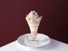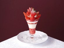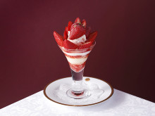 パフェメニューは、「兵庫県産『ロイヤルクイーン』のロイヤルストロベリーパフェ」「福岡県産『ゆきぼたん』のロイヤルストロベリーパフェ」「埼玉県産『かおりん』のロイヤルストロベリーパフェ」「埼玉県産『あまりん』のロイヤルストロベリーパフェ」(以上6,600円)、「兵庫県産『あまクイーン』のロイヤルストロベリーパフェ」「静岡県産『初恋の香り』のロイヤルストロベリーパフェ」「奈良県産『古都姫』と『コットンベリー』のロイヤルストロベリーパフェ」(以上5,500円)、「徳島県産『さくらももいちご』のプレミアムストロベリーパフェ」「栃木県産『とちひめ』のプレミアムストロベリーパフェ」(以上4,400円)、「和歌山県産『まりひめ』のスペシャルストロベリーパフェ」「三重県産『うた乃』のスペシャルストロベリーパフェ」「佐賀県産『天使のいちご』のスペシャルストロベリーパフェ」(以上3,800円)、「お皿で楽しむストロベリーパフェ」(3,500円)、「大分県産『ベリーツ』のストロベリーパフェ」「岐阜県産『美濃娘』のストロベリーパフェ」「京都府産『女峰』のストロベリーパフェ」(以上3,300円)を用意する。