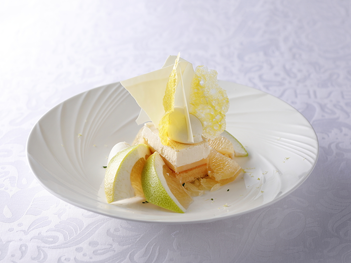 高知県産「水晶文旦」とホワイトチョコレートのムース ミルクアイスクリームを添えて