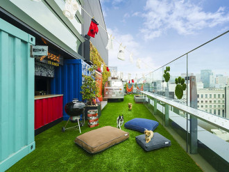 マリオット・インターナショナルが展開するライフスタイルホテル「アロフト東京銀座」(中央区銀座6)のルーフトップバー「Roof Dogs」が4月21日から、屋上ドッグラン併設型ビアガーデン「Roof Dogs バーベキュービアガーデン2026」の営業を始める。