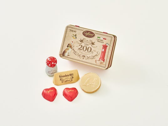 側面には歴史を感じるトリノの地図をデザイン。中にはカファレルの代名詞であるジャンドゥー