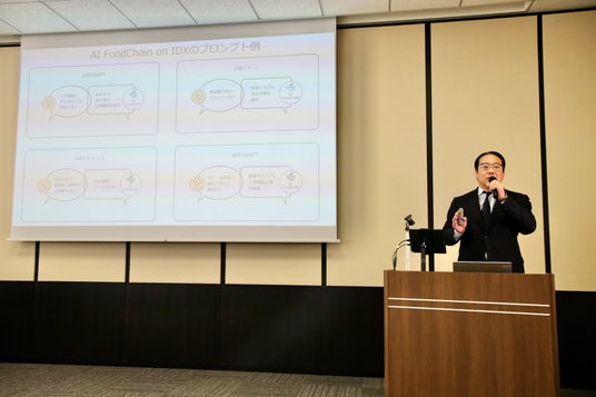 弊社志田は、自社開発プラットフォーム「AI?FoodChain on IDX」の構想と実装例を詳述。流通・外食の現場で、食品の原料から消費者までのデータを統合管理し、生成AIを活用して売れ筋分析・在庫最適化・危機対応を可能にするモデルを紹介しました。さらに、説明責任(トレーサビリティ)や品質監査の強化を促す環境を整備し、プラットフォームが「業界共通の知財・データ基盤」として機能する可能性を示唆。食品サプライチェーンにおけるAIインフラ化の先駆けとして位置づけました。