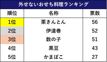▼外せないおせち料理ランキングTOP5 ※自由回答